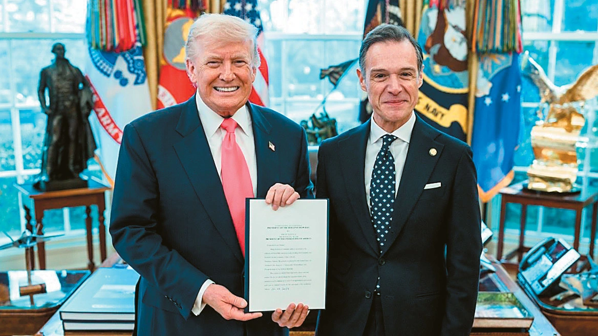 «Η σχέση μεταξύ των δύο χωρών είναι ισχυρότερη από ποτέ. Μια φιλία ισχυρή, ιστορική, θεμελιωμένη στην κοινή δημοκρατική και πνευματική μας κληρονομιά», ήταν τα θερμά λόγια με τα οποία υποδέχτηκε τον Ελληνα πρεσβευτή στο Οβάλ Γραφείο ο Τραμπ, ο οποίος σύντομα έθεσε το πλαίσιο των σχέσεων. Αναφέρθηκε στον «ηγετικό ρόλο της χώρας μας στο ΝΑΤΟ», με τη διευκρίνιση ότι «η ελληνική κυβέρνηση αντιλαμβάνεται ότι η ειρήνη διασφαλίζεται μέσω της ισχύος».
